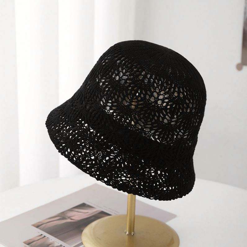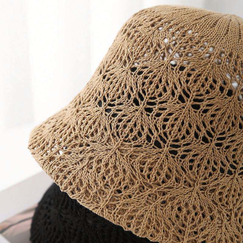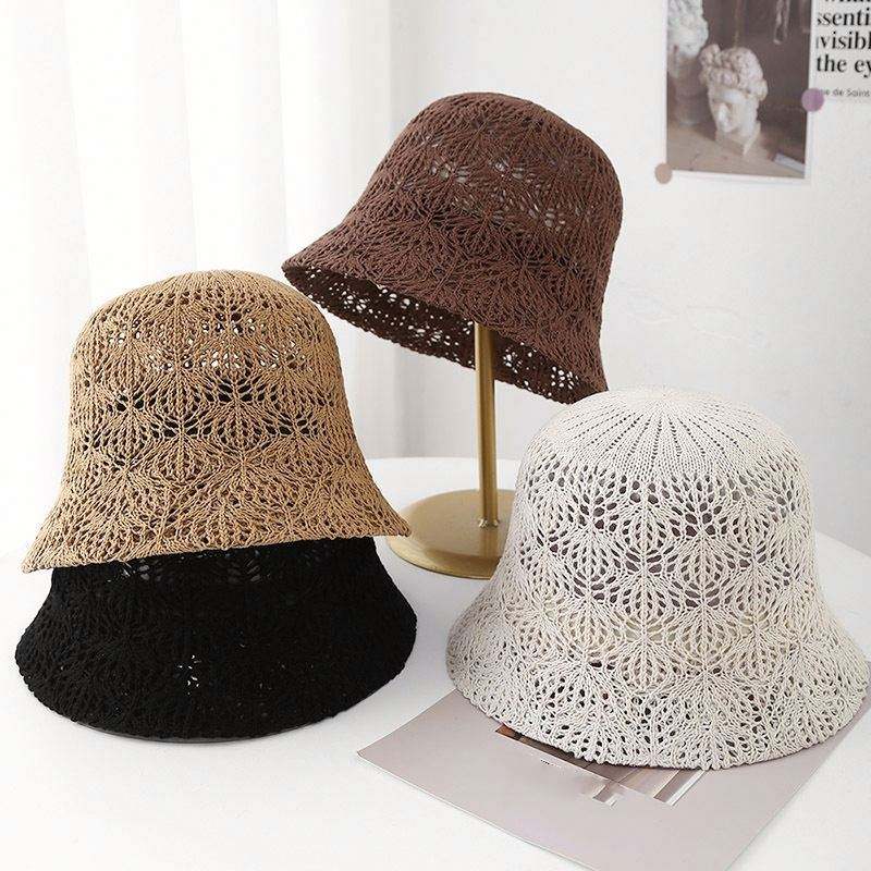 Nuevo Sombrero de Pescador de Punto Jacquard de Color Sólido, Simple, con Diseño Calado, para Mujer, Transpirable, Protección Solar, para Verano