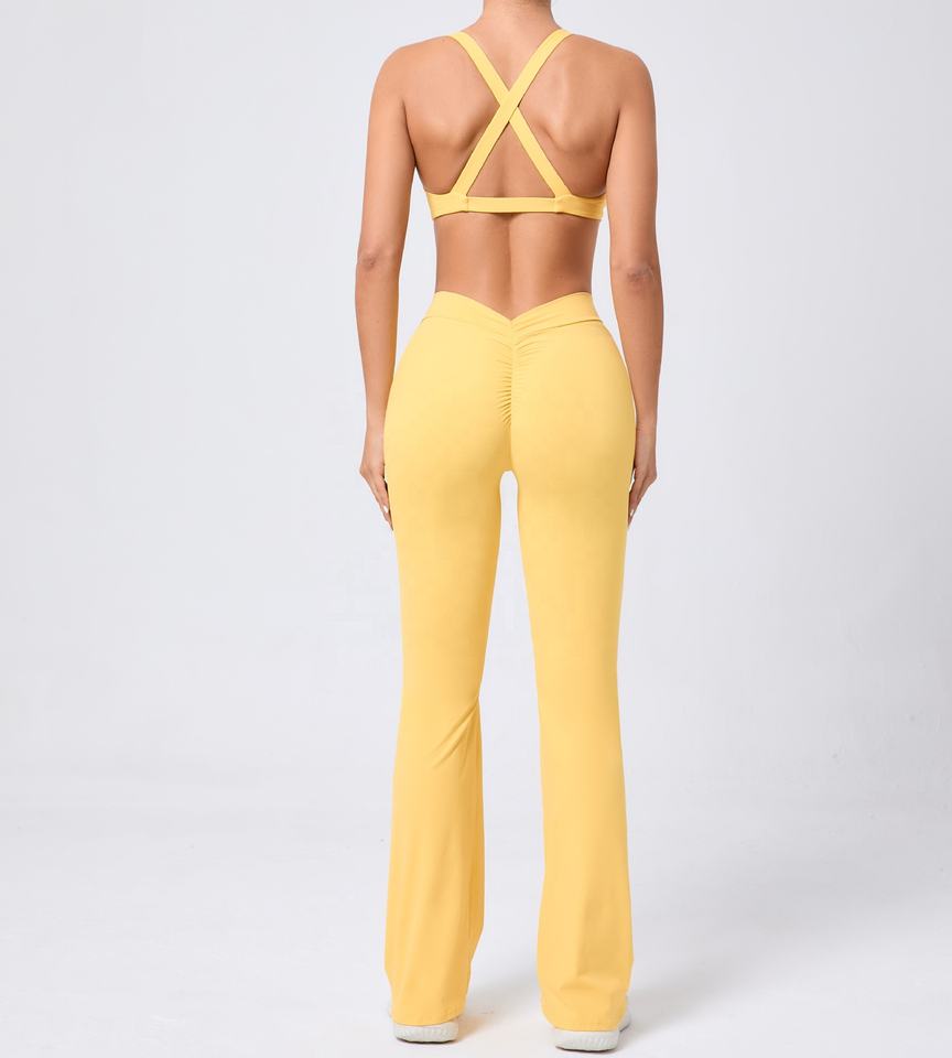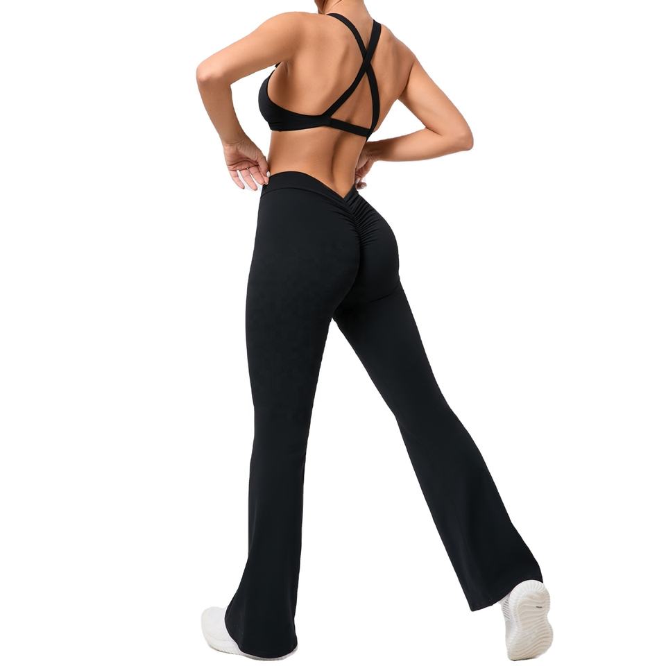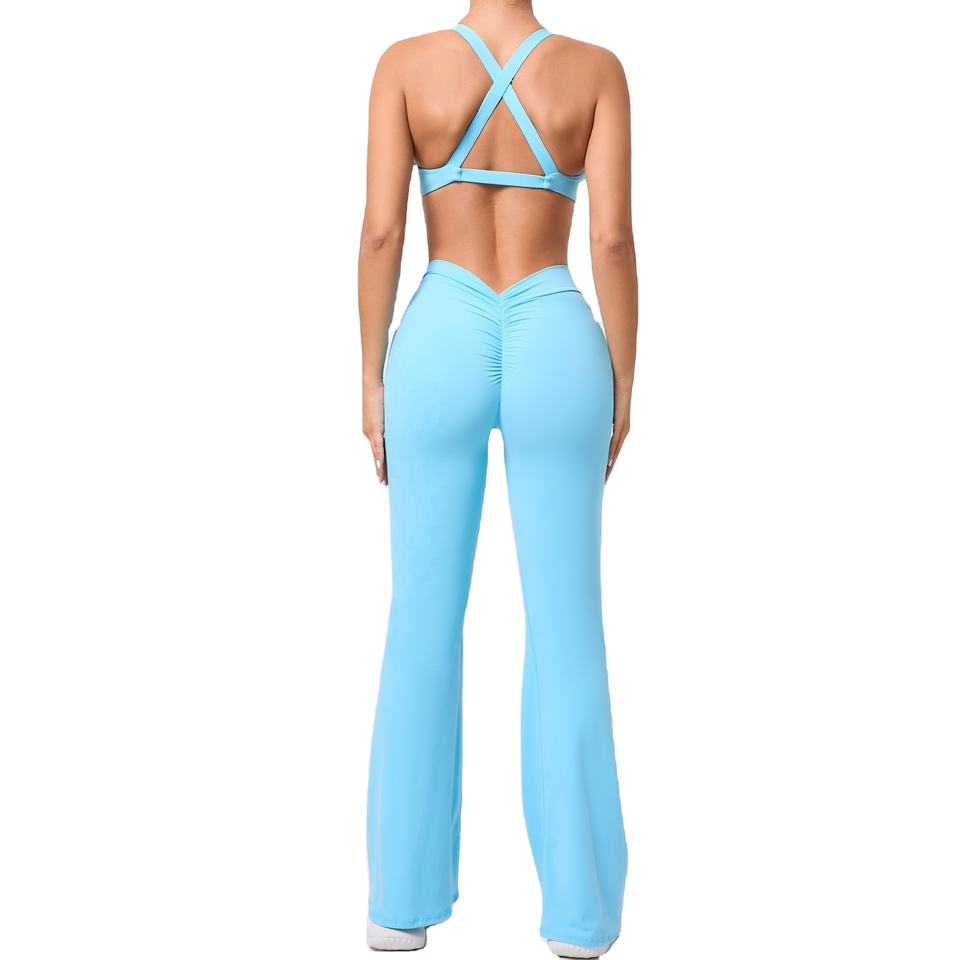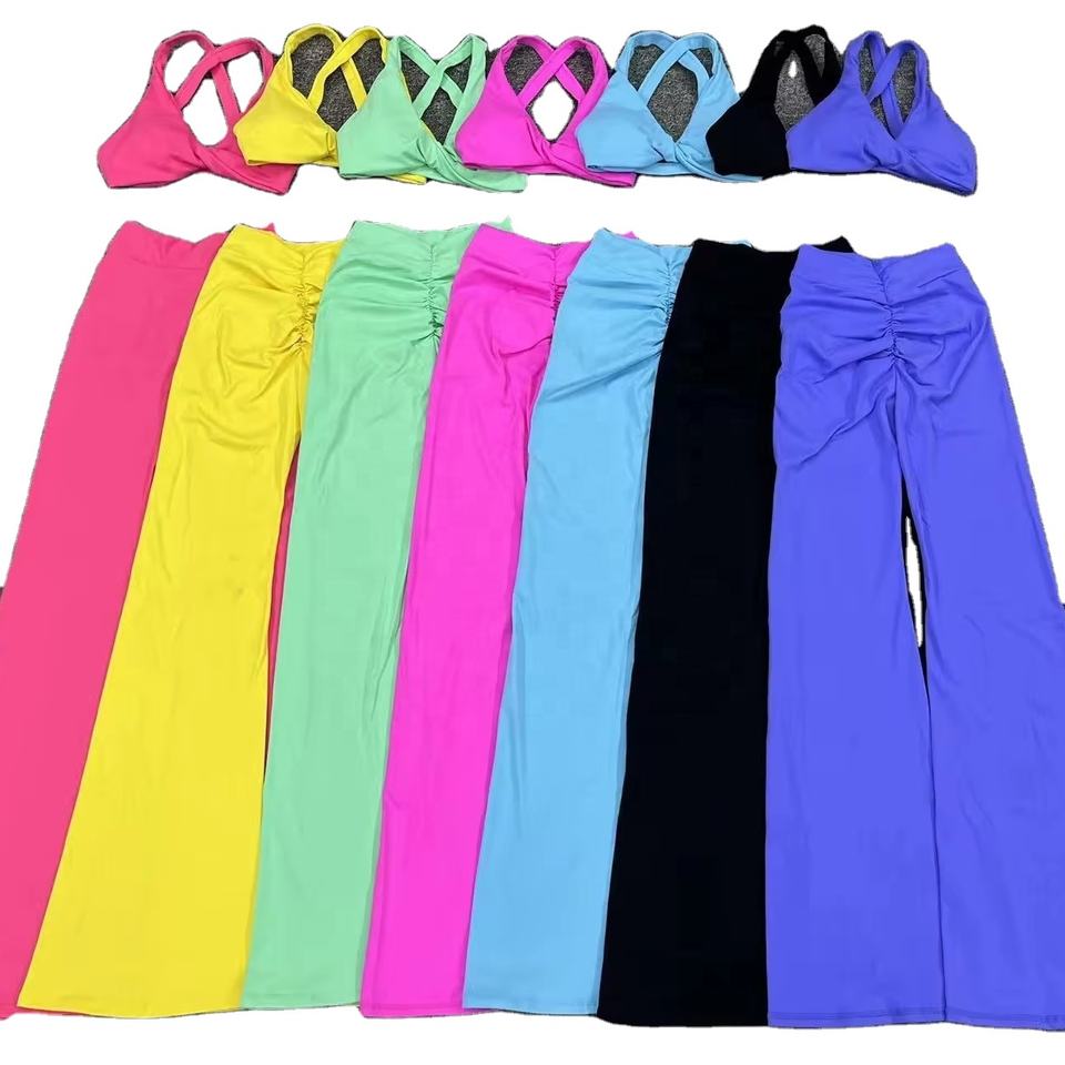 Nuevo conjunto sólido de 2 piezas de Sujetador deportivo y mallas acampanadas de talla grande para gimnasio, Fitness, Yoga