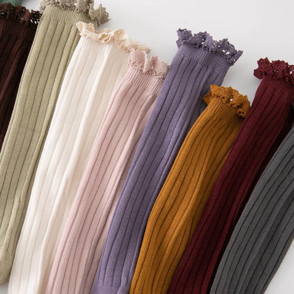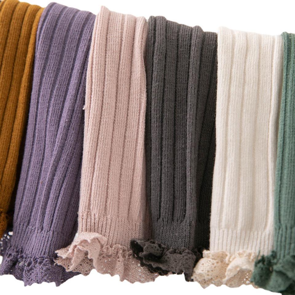 Nuevos Calcetines de Algodón Peinado de Doble Aguja Transpirables de Media Pantorrilla para Niños y Niñas, Talla Única, Tubo Recto, con Encaje, para Primavera y Otoño