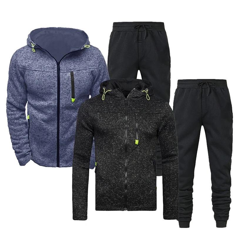 Nuevo traje deportivo de primavera y otoño para hombre, sudaderas con capucha transpirables + Pantalones, sudadera cálida, chándal para invierno, conjunto deportivo masculino
