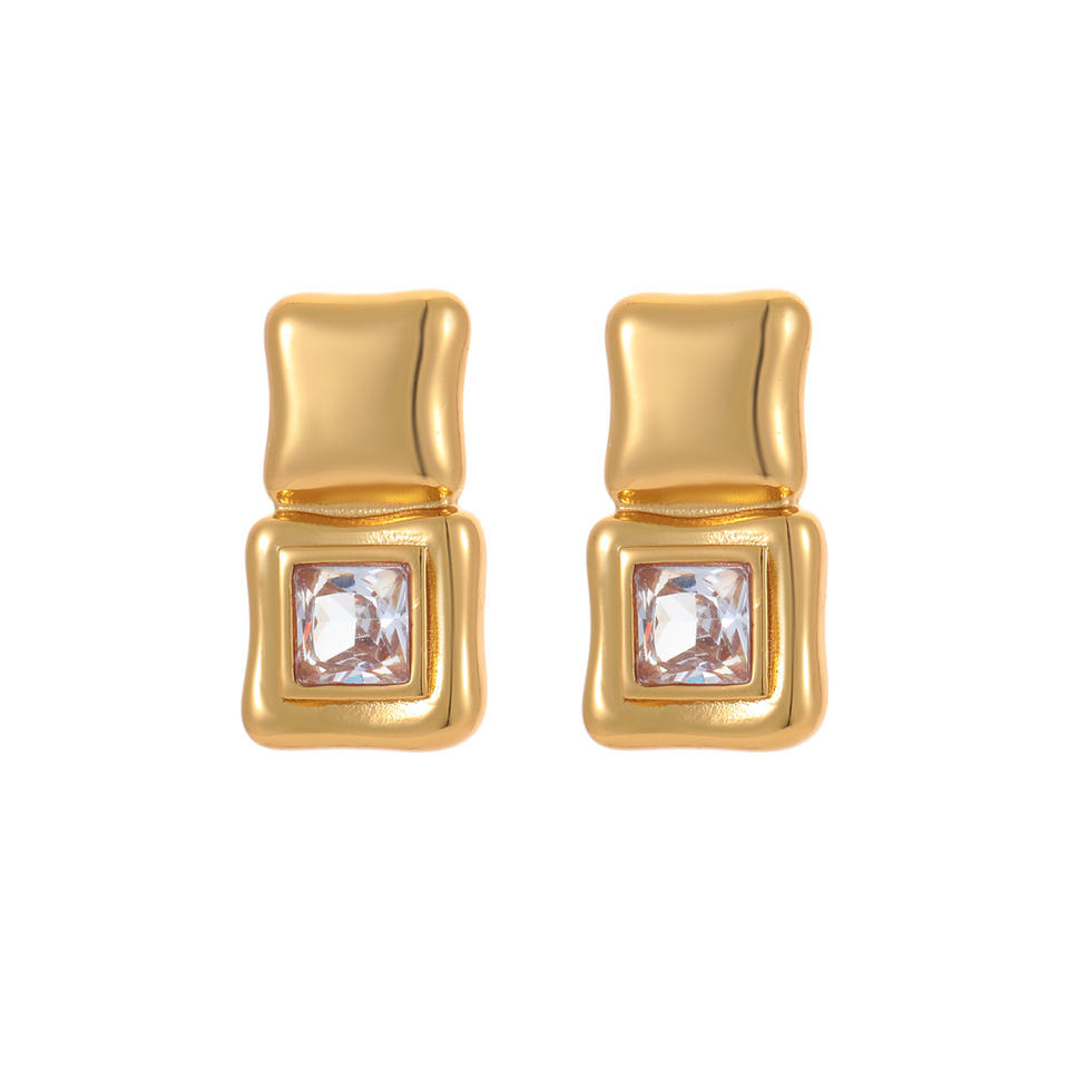 Nombre del Producto:Pendientes cuadrados grandes de acero inoxidable con circonita