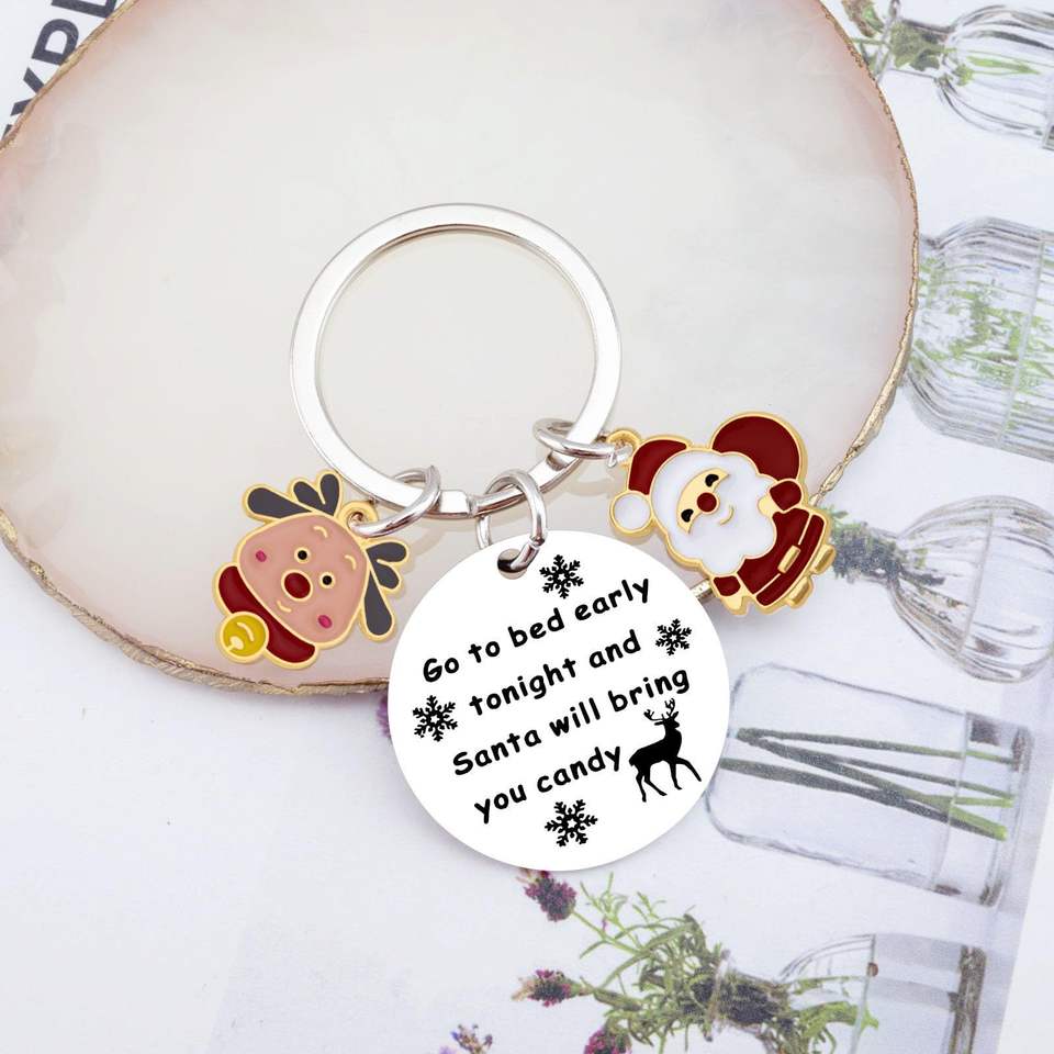 Nuevo Llavero de Acero Inoxidable con Diseño de Papá Noel y Reno Grabado con Láser, un Regalo Perfecto para Navidad