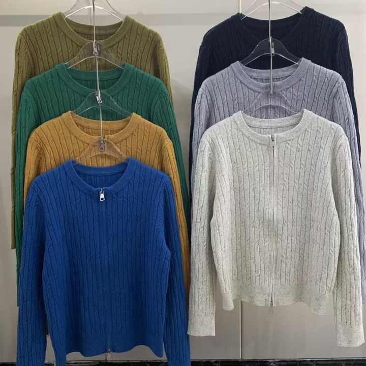 Nuevo Suéter de Punto Trenzado con Cierre, Color Sólido, Estilo Holgado para Mujer