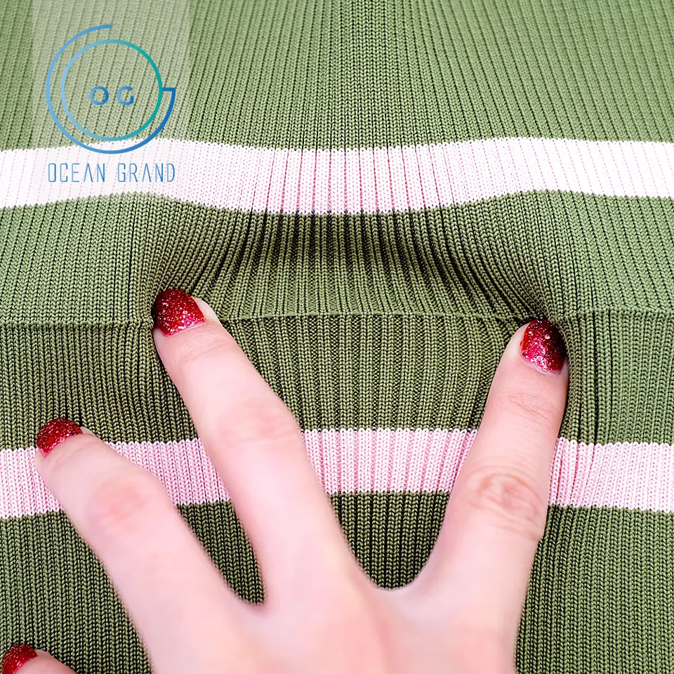 Descripción:Tela de costilla elástica a rayas para puño y cuello