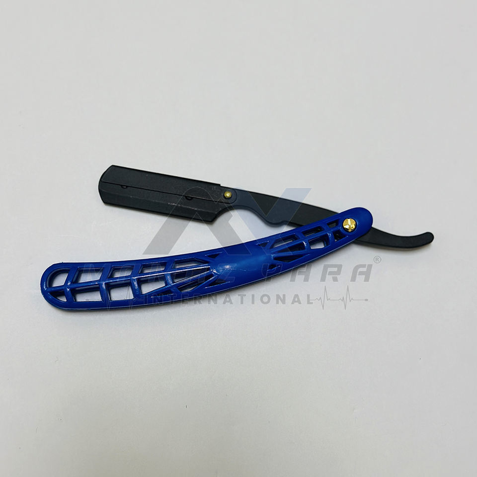 Nueva maquinilla de afeitar de peluquero con mango de araña de plástico azul recto, herramienta de limpieza de barba, soporte de hoja de bloqueo oscilante negro de acero inoxidable
