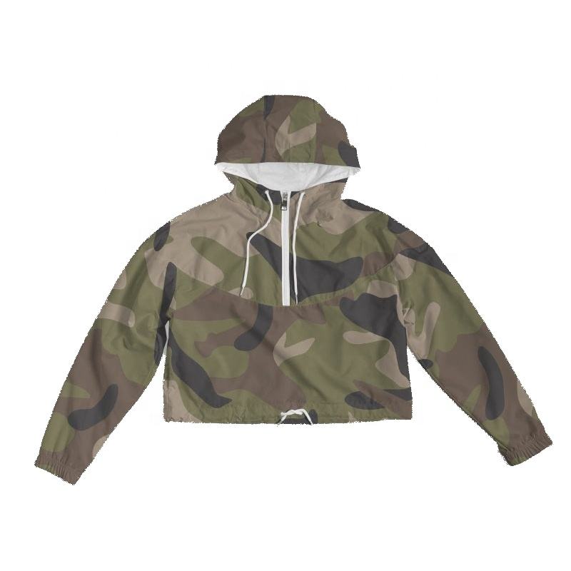 Chaqueta Corta Deportiva de Moda Urbana con Estampado de Camuflaje para Mujer, Chaqueta Cortavientos con Capucha y Media Cremallera, Ropa Exterior con Logotipo Personalizado, Chaquetas Harajuku de Invierno