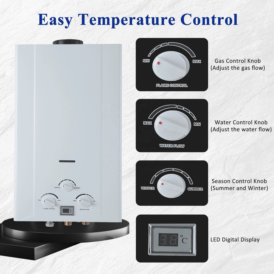 Nuevo estilo, calentador de agua sin tanque de Gas de 10 litros, protección contra sobrecalentamiento, calentador de agua de Gas de escape Natural