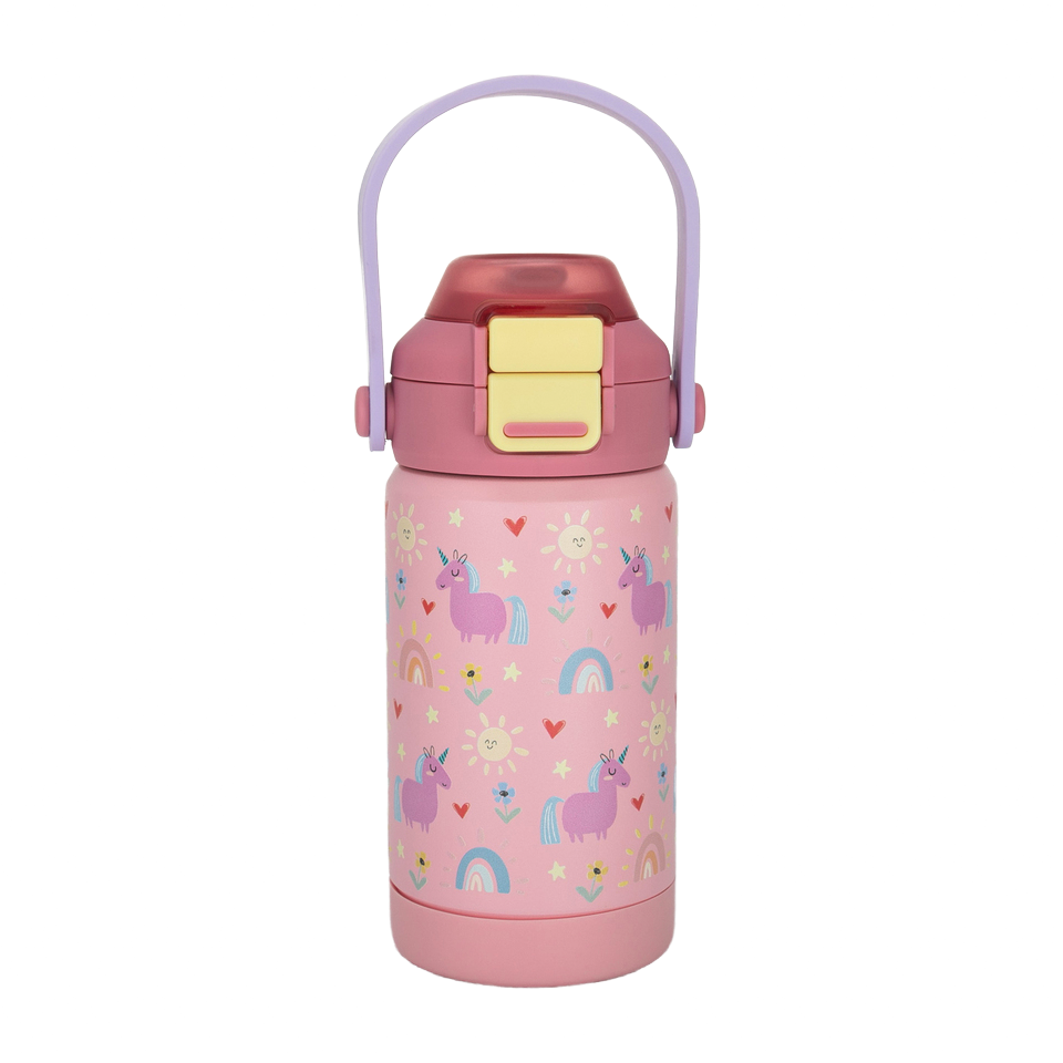 Nueva Botella de Agua Infantil de Doble Pared de 16 oz, de Acero Inoxidable, para Estudiantes, con Pajita de Silicona