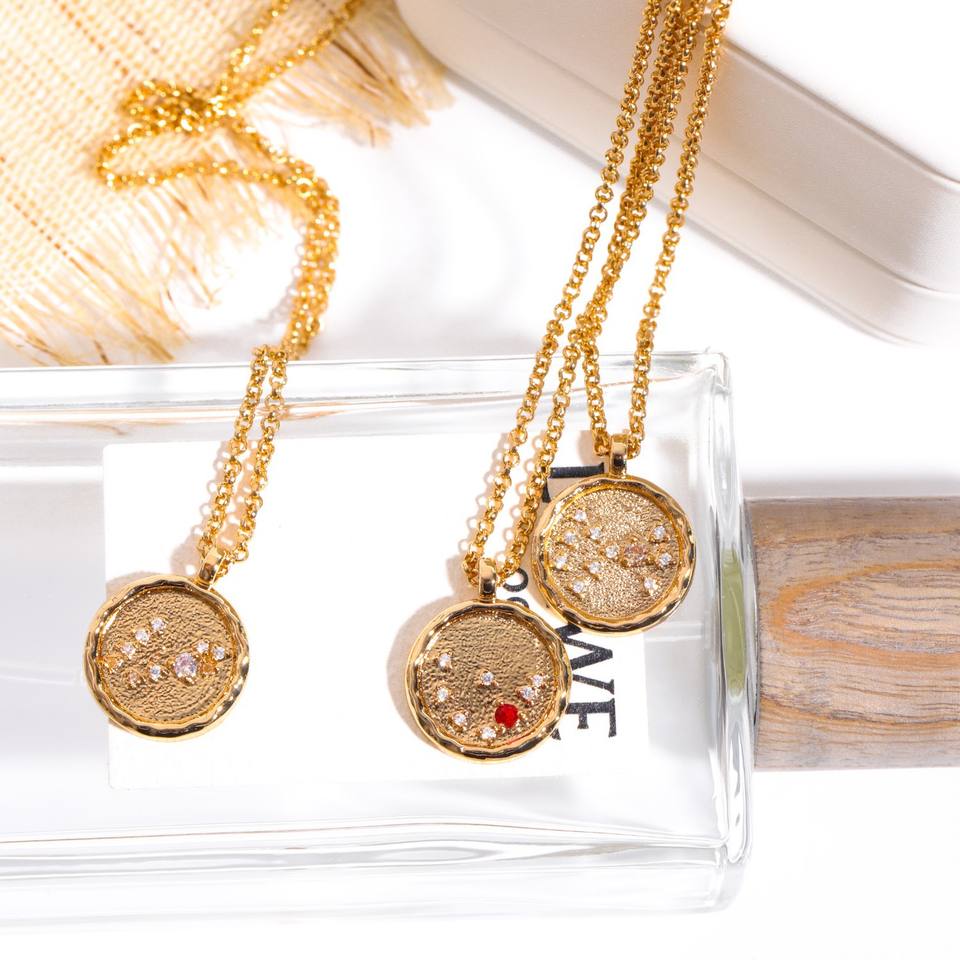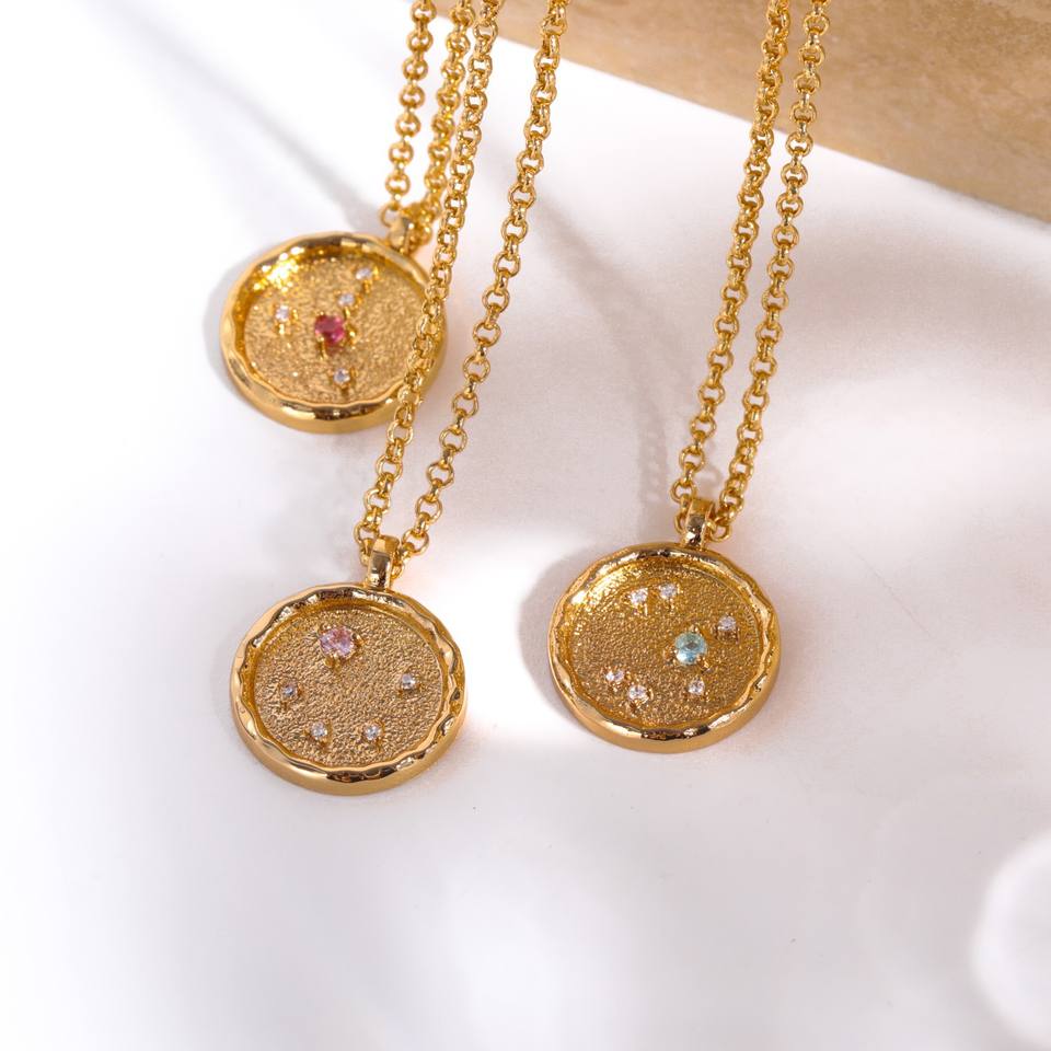 Nuevo estilo 18K chapado en oro cadena de eslabones de latón Hip Hop Unisex Zodiac Zircon 12 meses collar de piedra natal