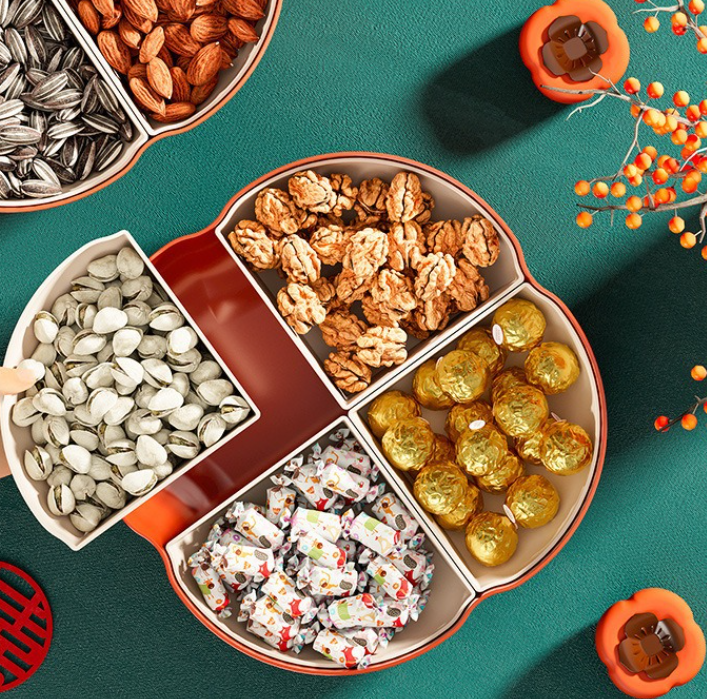 Nuevo estilo, 1 pieza, plato de fruta Ruyi, multicompartimento, caja de aperitivos de frutos secos y frutos secos para el hogar, contenedor y almacenamiento de alimentos