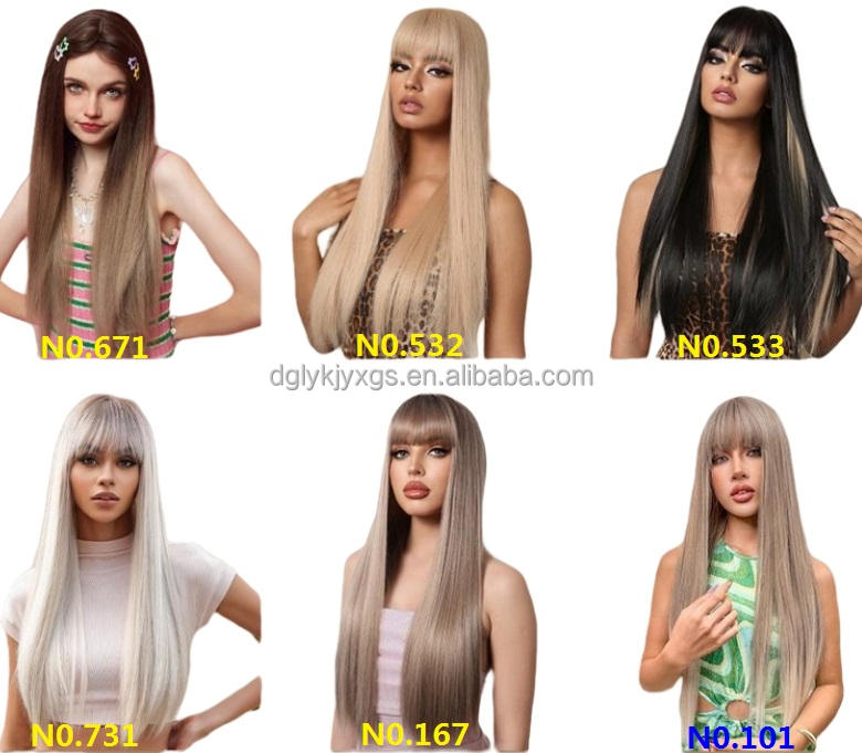 Nuevo estilo, pelucas rectas largas de 28 pulgadas con flequillo, peluca sintética rubia oscura, pelo falso resistente al calor para mujeres