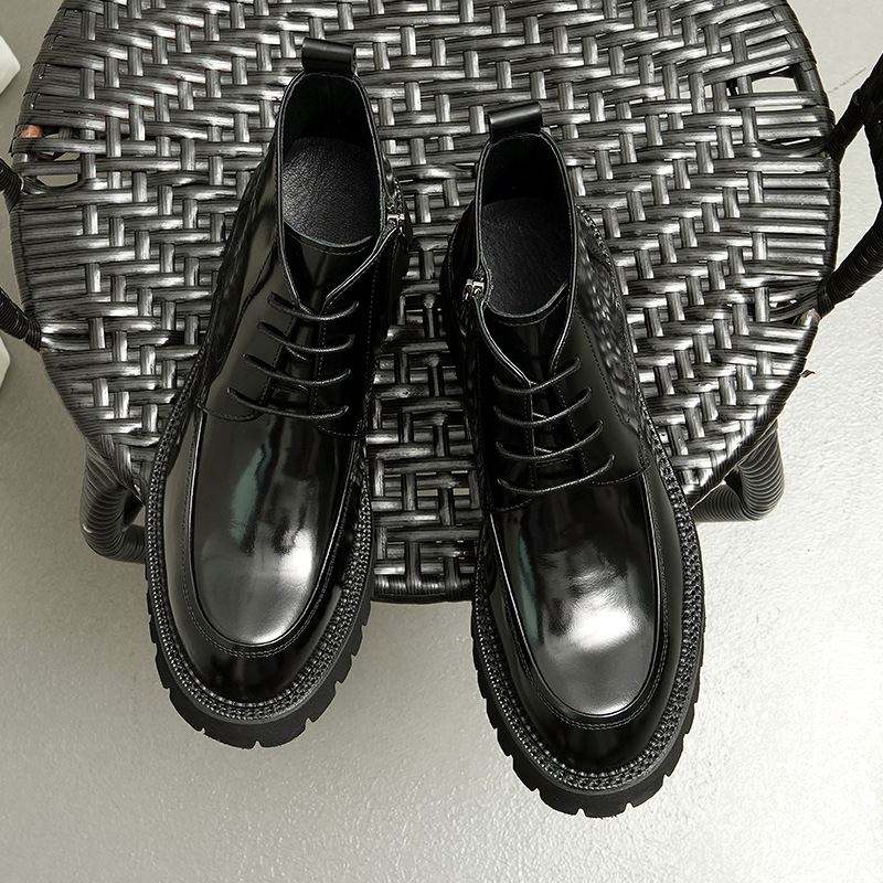 Botas de Hombre con Punta en Pico, Estilo Otoño-Invierno, Hechas a Mano, para Fiesta, Estilo Ejecutivo, con Cordones, de Cuero