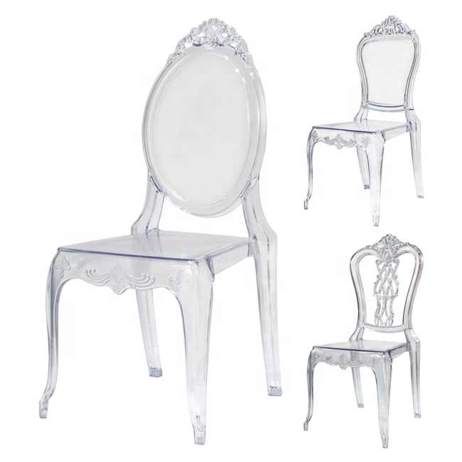 Silla de resina acrílica transparente para boda, nuevo estilo