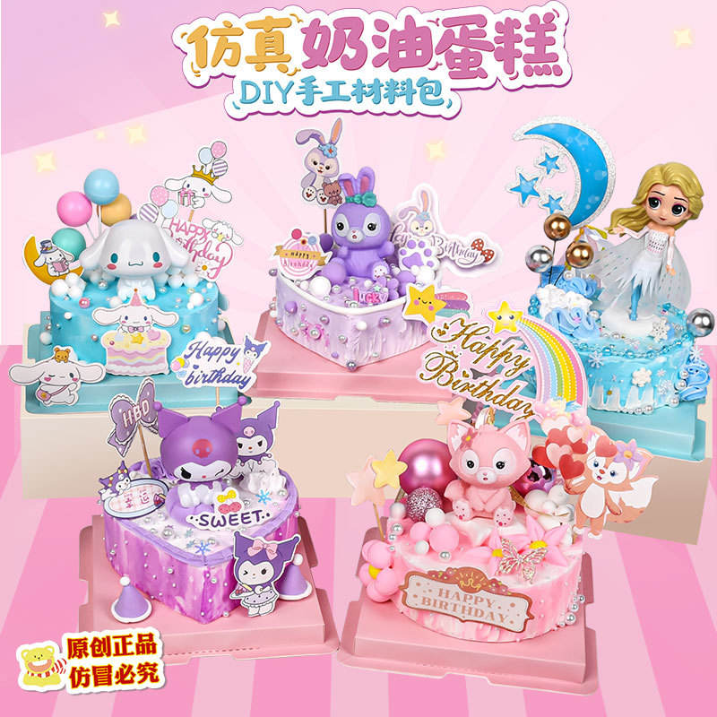 Nuevo Kit de Manualidades para Niños, Simulación de Pastel de Crema Artificial, Regalo de Cumpleaños, Caja de Regalo Grande de Doble Capa con Diseño de Dibujos Animados