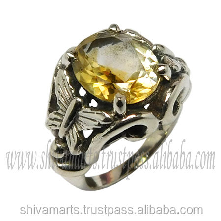 Nuevo estilo citrino solitario brillante amarillo piedra preciosa estilo atemporal 925 joyería de plata esterlina eternidad anillos Vermeil