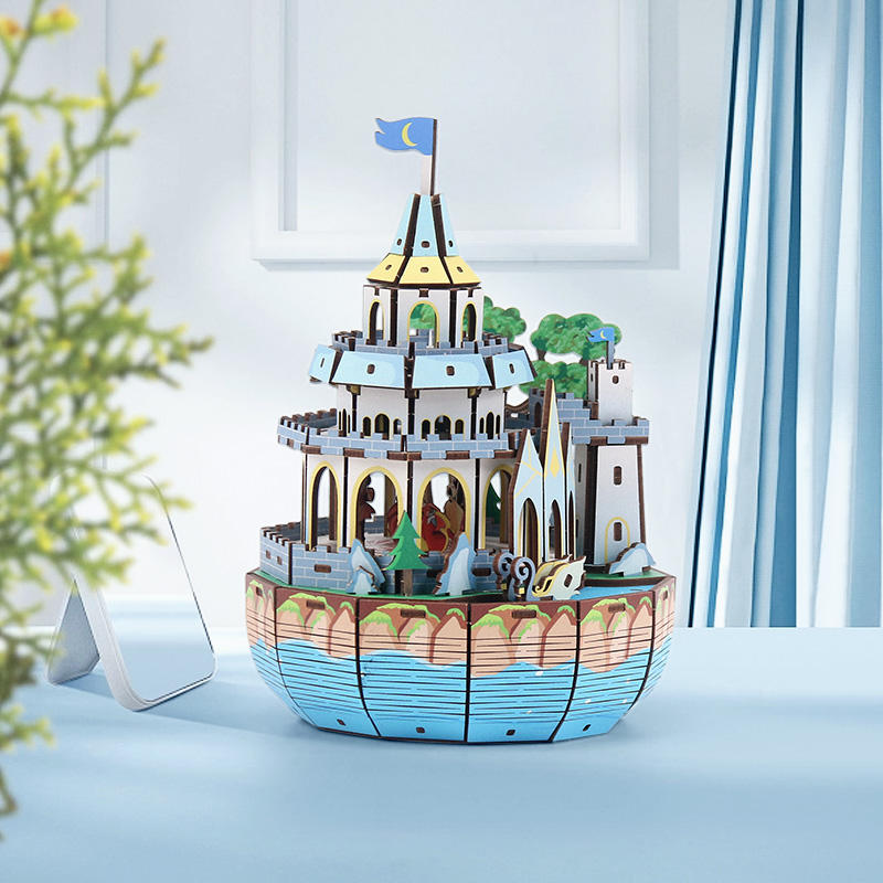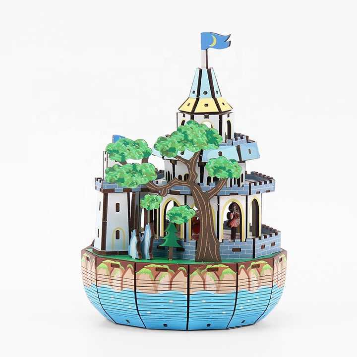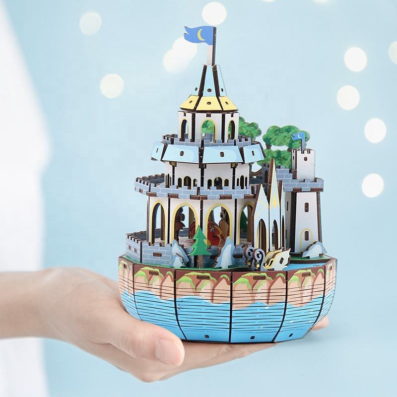 Rompecabezas 3D creativos de nuevo estilo, juguetes de Castillo de carrusel personalizados DIY, rompecabezas de madera, caja de música 3D para niños