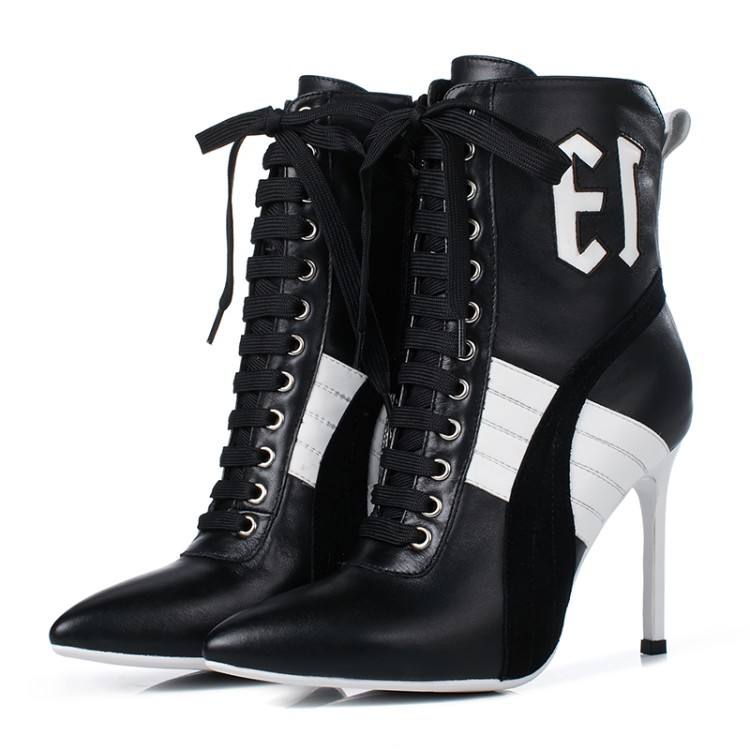 Botas de Tacón Alto con Cordones y Cremallera, Estilo Occidental, con Punta en Pico, para Mujer, Otoño-Verano, con Logotipo Personalizado