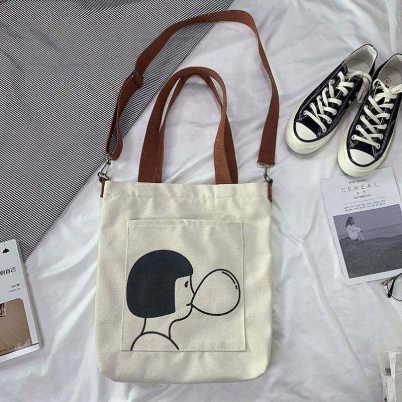 Bolsa de Compras de Lona de Algodón con Logotipo Personalizado, Estilo Moderno, Linda, Grande, con Asa y Correa Cruzada para Mujer