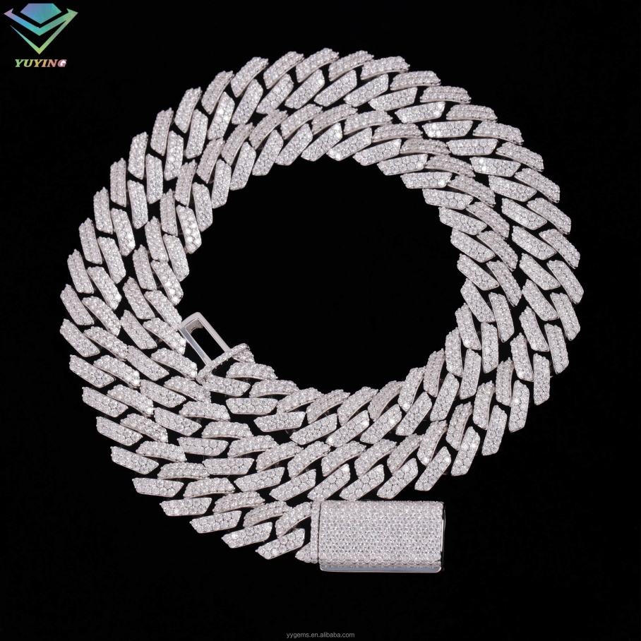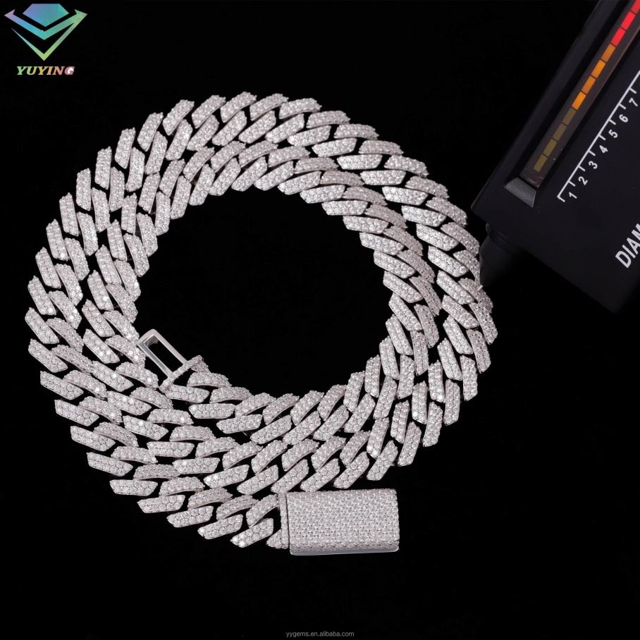 Cadena Cubana de Plata de Ley con Diamantes de Moissanita VVS de 12 mm y 2 Filas, Diseño Elegante y Moderno, 100% Probada, para Collar de Hip Hop