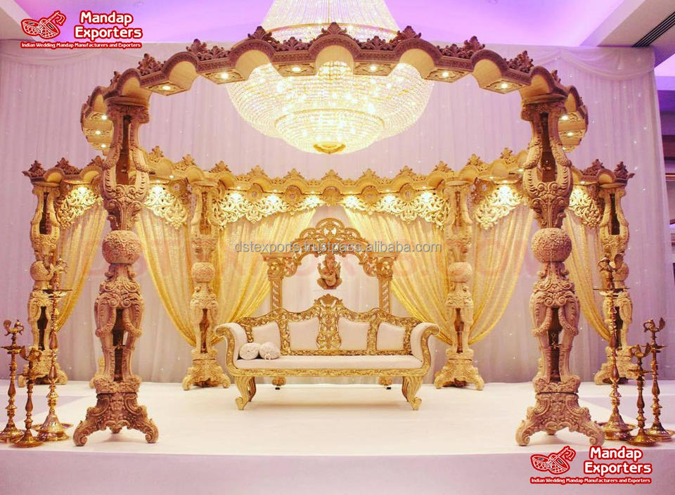 Mandap DE BODA dorado de nuevo estilo, Mandap DE BODA tallado dorado con concepto abierto FRP, Mandap DE BODA tallado, escenario de EE. UU.