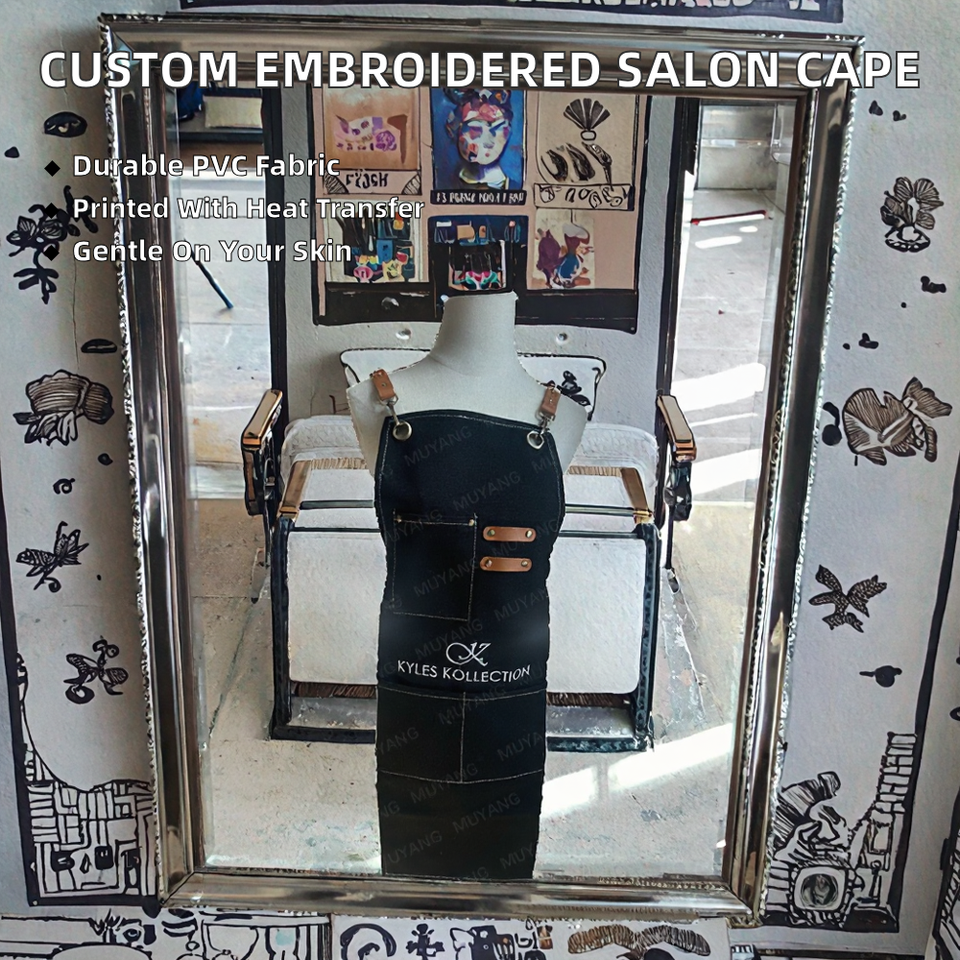 Delantales y capas de peluquería con logotipo personalizado, cómodos, de PVC, con estampado por transferencia de calor, estilo nuevo.