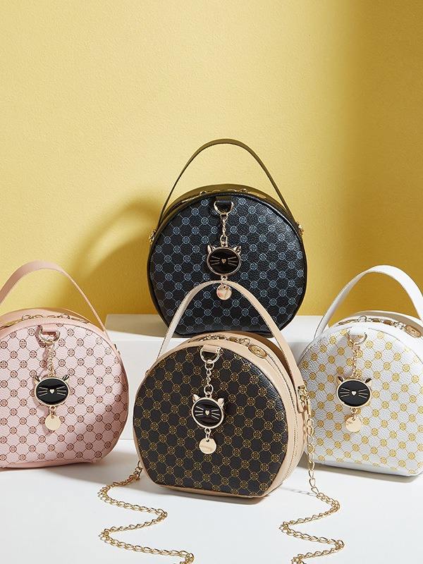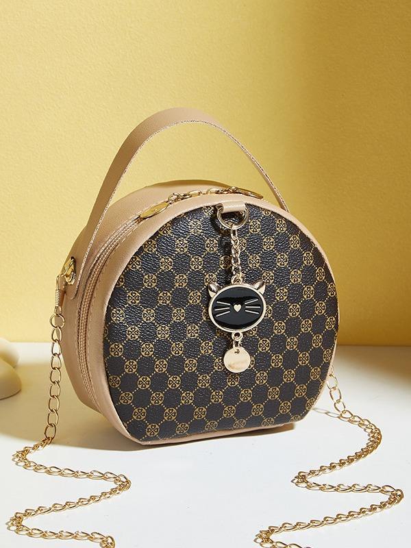 Bolso de Mano Redondo de Estilo Nuevo y Muy Popular, Bolso de Mujer Multifuncional de PU con Cadena Retro y Cremallera Clásica