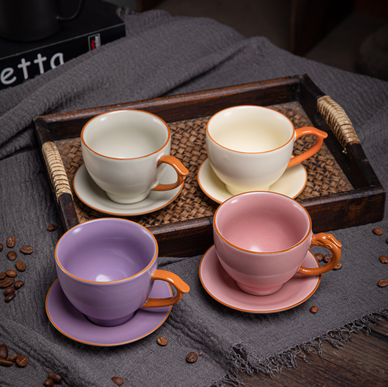 Tazas de Cerámica Estilo Francés, Nueva Colección, Venta Caliente, con Asa Rosa, Modernas, de Boca Ancha, para Café