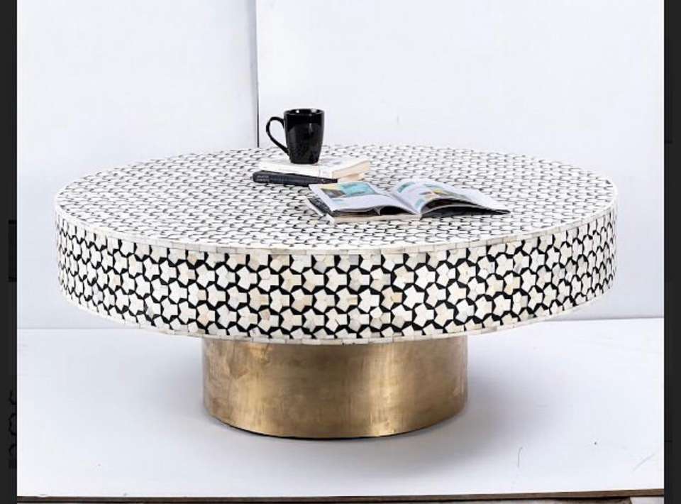 Nuevo estilo indio hecho a mano mesa de centro hueso incrustaciones taburete redondo para decoración del hogar hermoso diseño muebles de sala de estar taburete