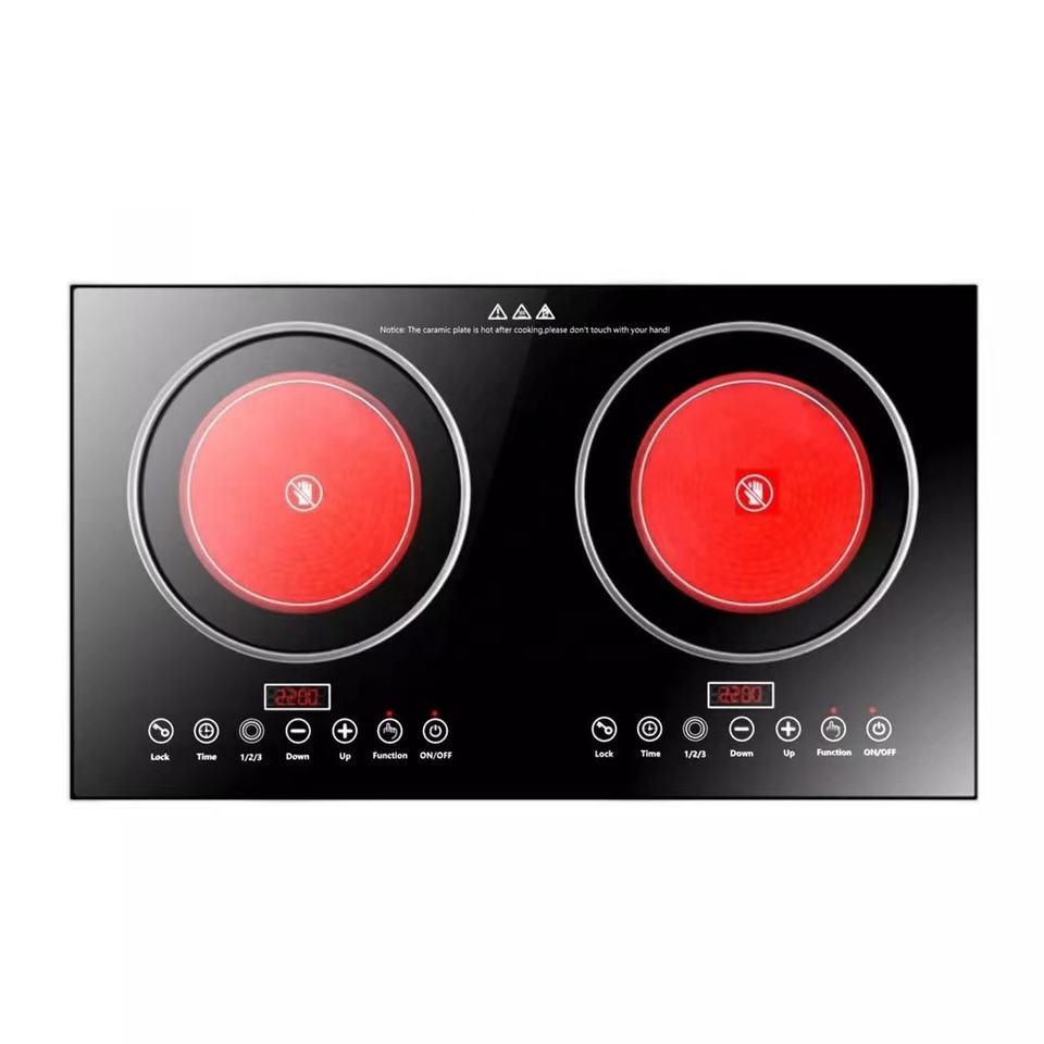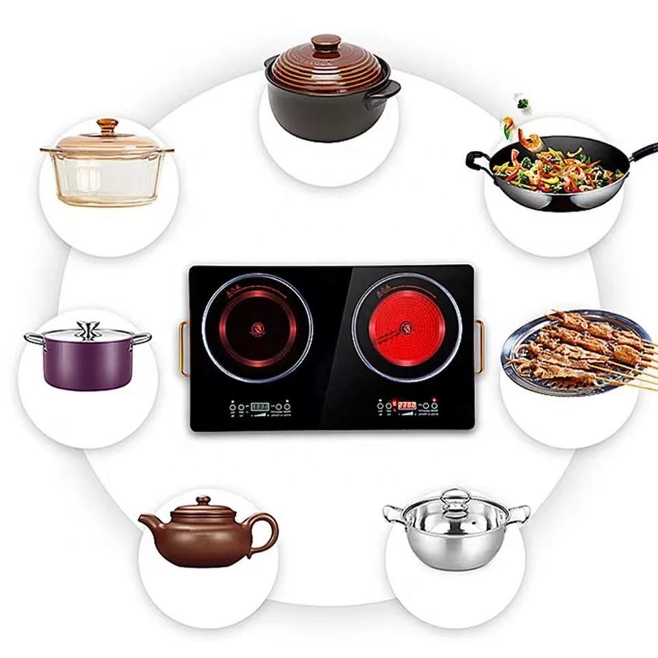 Estufas de infrarrojos de inducción de nuevo estilo, calentador de inducción de doble quemador integrado, estufa de inducción eléctrica de mesa