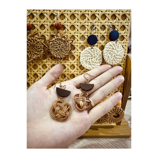 Pendientes de ratán Natural de nuevo estilo para mujer, diseño variado, joyería de moda, precio barato, mayoristas de Vietnam para Navidad
