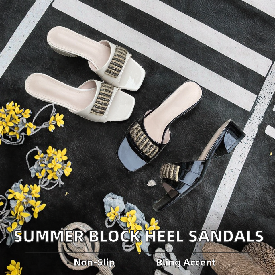 Sandalias de Tacón Ancho con Punta Abierta para Mujer, Estilo Nuevo, Parte Superior de PU, Fáciles de Poner, Transpirables, Antideslizantes, Estampadas, para Otoño/Primavera/Verano