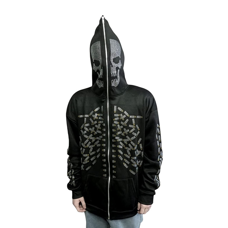 Ropa de calle personalizada OEM de alta calidad, nuevo estilo de talla grande, sudaderas con capucha con estampado de esqueleto para hombre, cremallera completa de 500GSM para invierno
