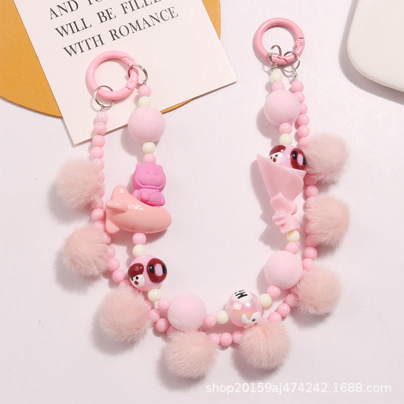 Nuevo estilo Pom-Pom pintado a mano cuentas doble cadena llavero colgante lindo nave espacial accesorios acrílicos bolsa personalizada Decoración