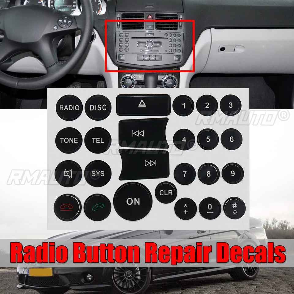 Pegatina de Reparación de Botones de Radio de Estilo Moderno para Mercedes-Benz Clase C, E, GLK, W, 2007-2014, Decoración Interior de Automóviles