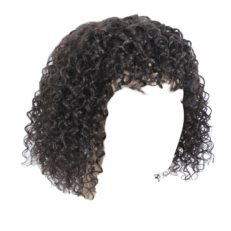 Peluca de Cabello Humano Remy de Nuevo Estilo, Negra Natural, Rizada Jerry, 12 Pulgadas, 165g, Corta, Myanmar, 1 Pieza, 150% de Densidad, Marrón Medio, con Encaje