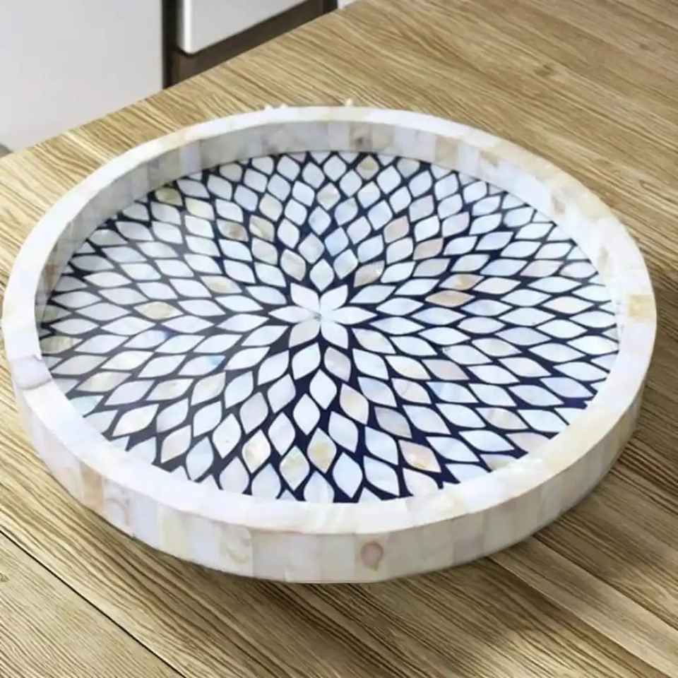 Bandeja y plato redondos de nácar para servir comida, nuevo estilo, alta calidad, ecológicos, aptos para lavavajillas, para bodas, a bajo precio.