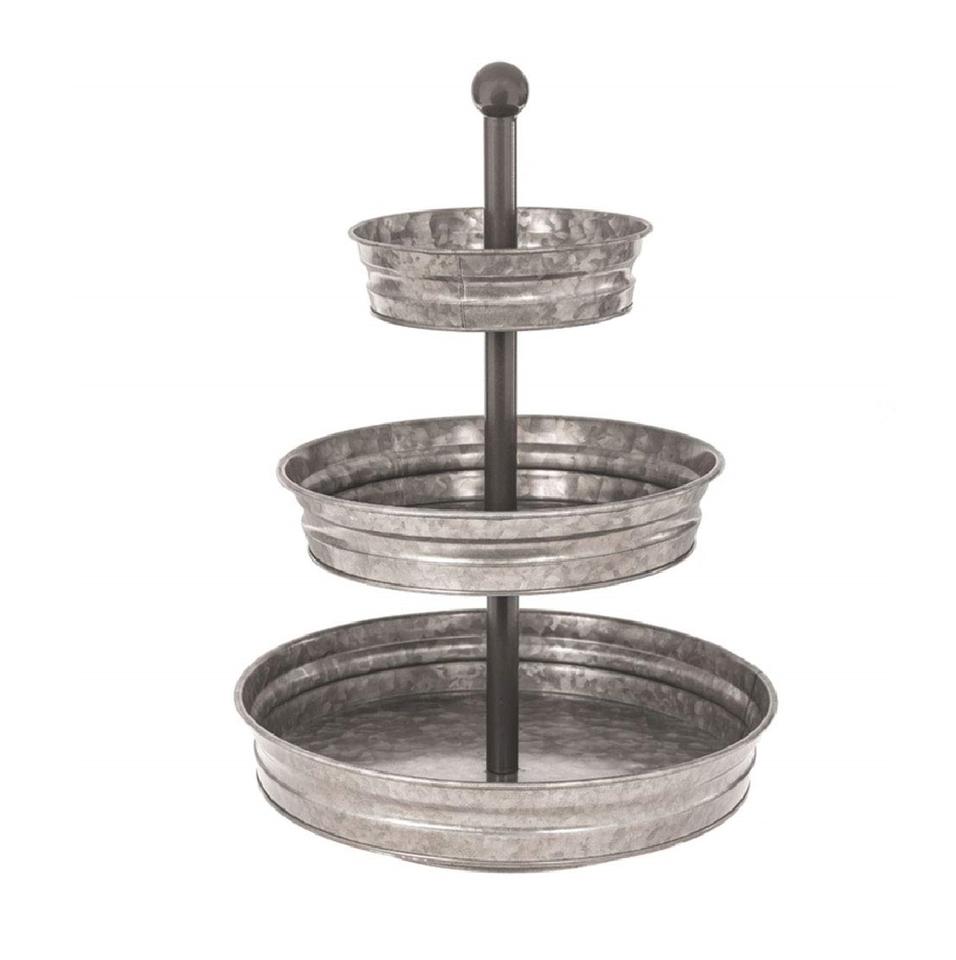 Juego de nuevo estilo de 2 bandejas rectangulares de metal galvanizado para servir con mangos de madera Estilo de granja rústica