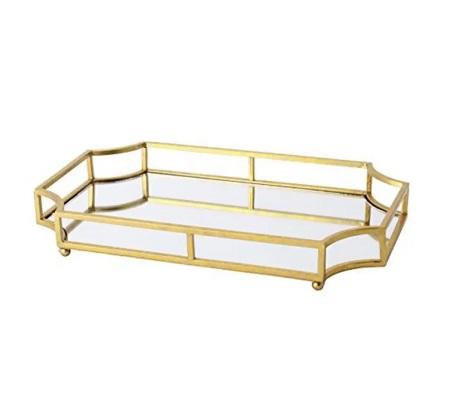 Nuevo estilo, mesa pulida brillante, bandeja decorativa de acero inoxidable con acabado dorado para servir bebidas y aperitivos