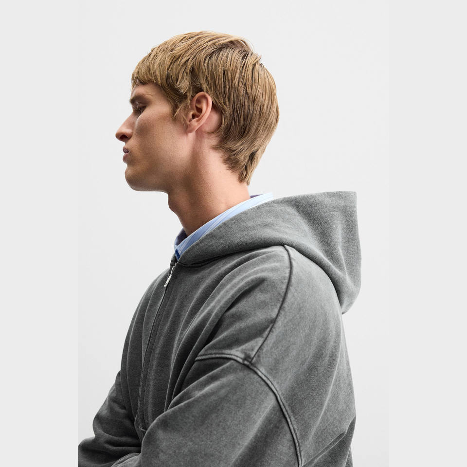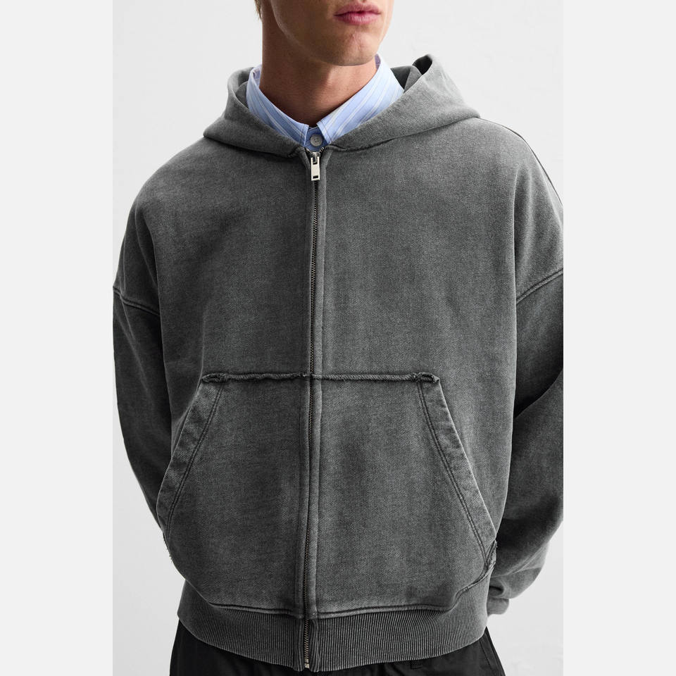 Nombre del producto:Sudaderas con cremallera efecto deslavado ácido