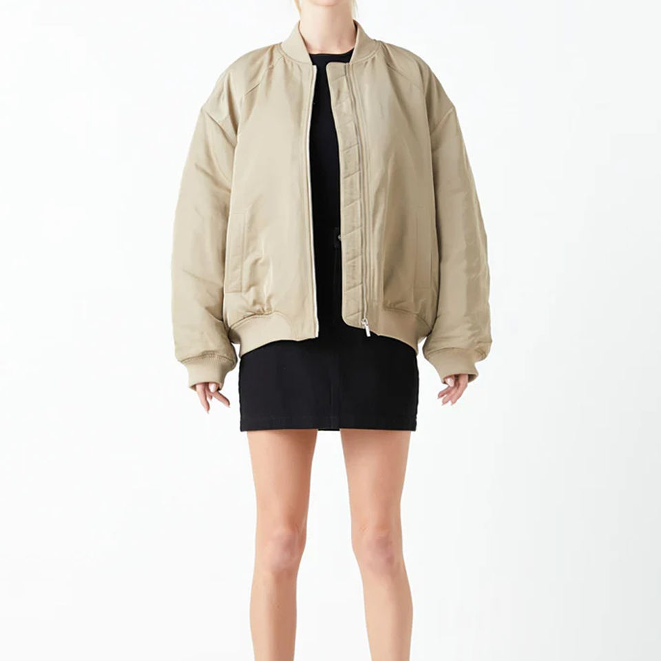Nuevo estilo, precio al por mayor, chaqueta universitaria de satén hecha a medida para damas, chaqueta de satén para mujer más vendida