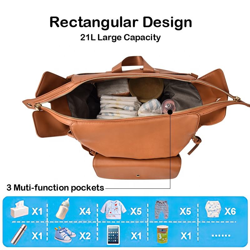 Nueva Mochila de Cuero PU de Diseño Elegante, Gran Capacidad, Ecológica, Resistente al Agua y Antirrobo para Pañales de Bebé