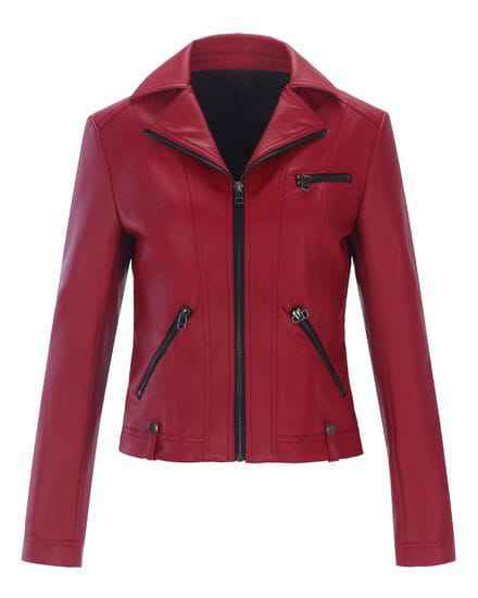 Nueva y elegante chaqueta de cuero para mujer de Color sólido corto de invierno de la mejor calidad de cuero genuino a prueba de viento transpirable ecológico