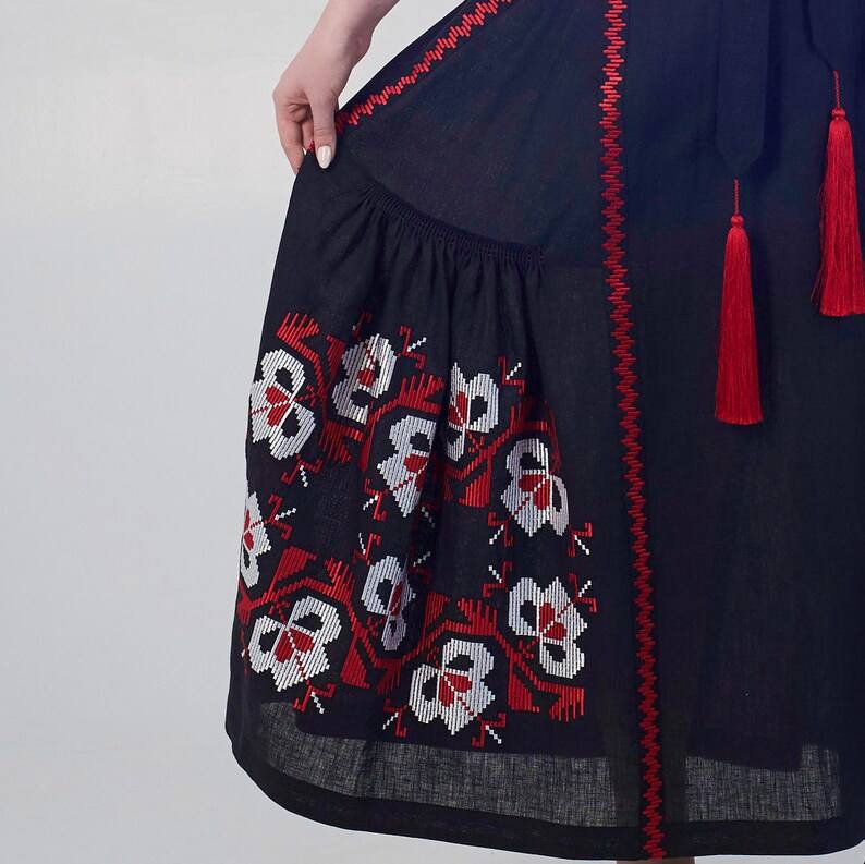 Nueva blusa de verano de moda azul marino Ucrania túnica bordada con flores blancas Maxi tela de algodón de manga completa para mujeres y niñas