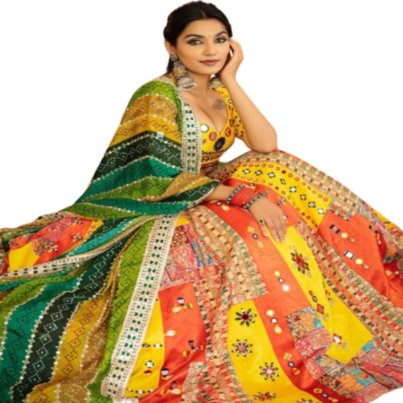 Nuevo Superhit totalmente cosido Faux Georgette Bandhani estampado Lehenga Choli trabajo de bordado exclusivo para fiesta de verano estilo indio