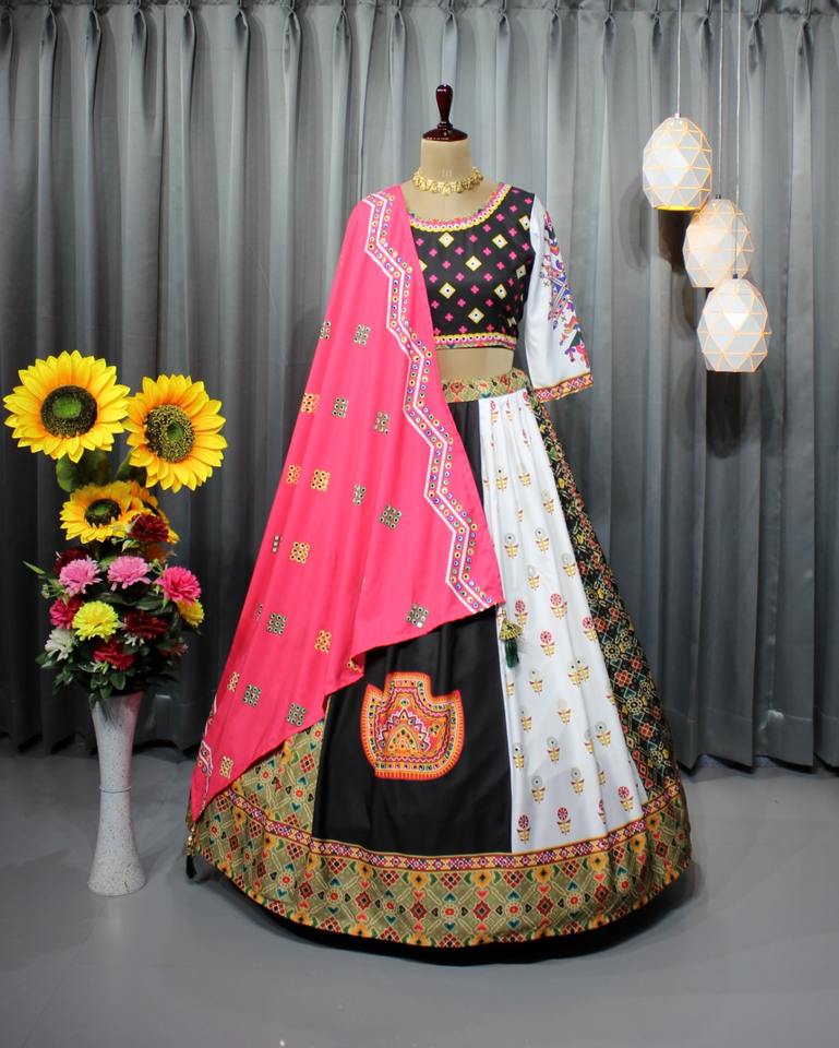 Nuevo Superhit totalmente cosido Faux Georgette Bandhani estampado Lehenga Choli bordado exclusivo trabajo tradicional invierno tendencia