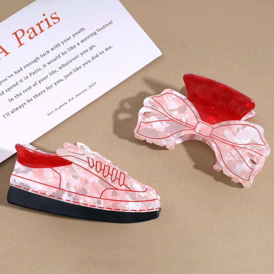 Nuevas Pinzas para el Cabello con Forma de Lazo de PVC Rosa Dulce, Pinzas Creativas con Diseño de Zapatos de Dibujos Animados, Pinzas de Tiburón para Mujer, para Fiestas