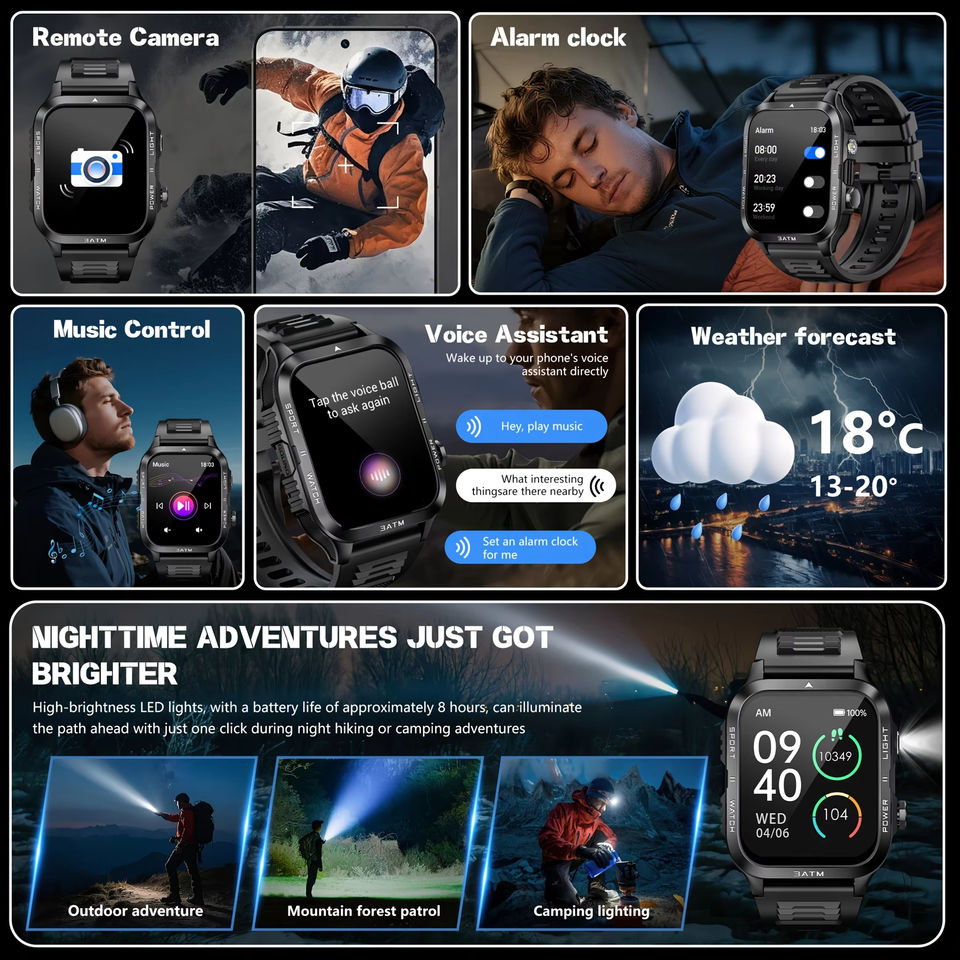 Nuevo Reloj Inteligente T-Rex 3 con Linterna LED, Resistente al Agua 3ATM, Batería de 880mAh, Llamadas Bluetooth, GPS, Seguimiento Deportivo, Smartwatch 2026