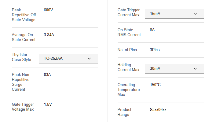 Corriente RMS en estado:6 A