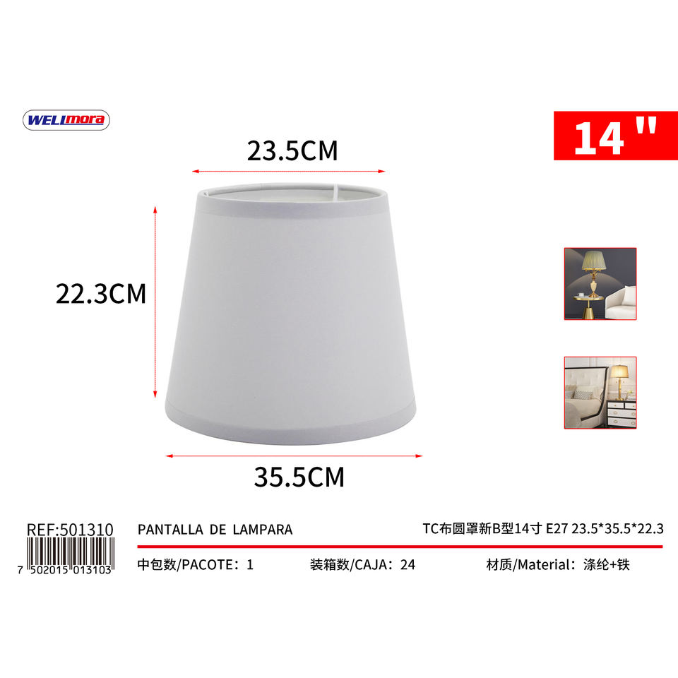 Pantalla de Lámpara Redonda Shirong de 14 Pulgadas, Tela TC, Diseño Moderno, E27