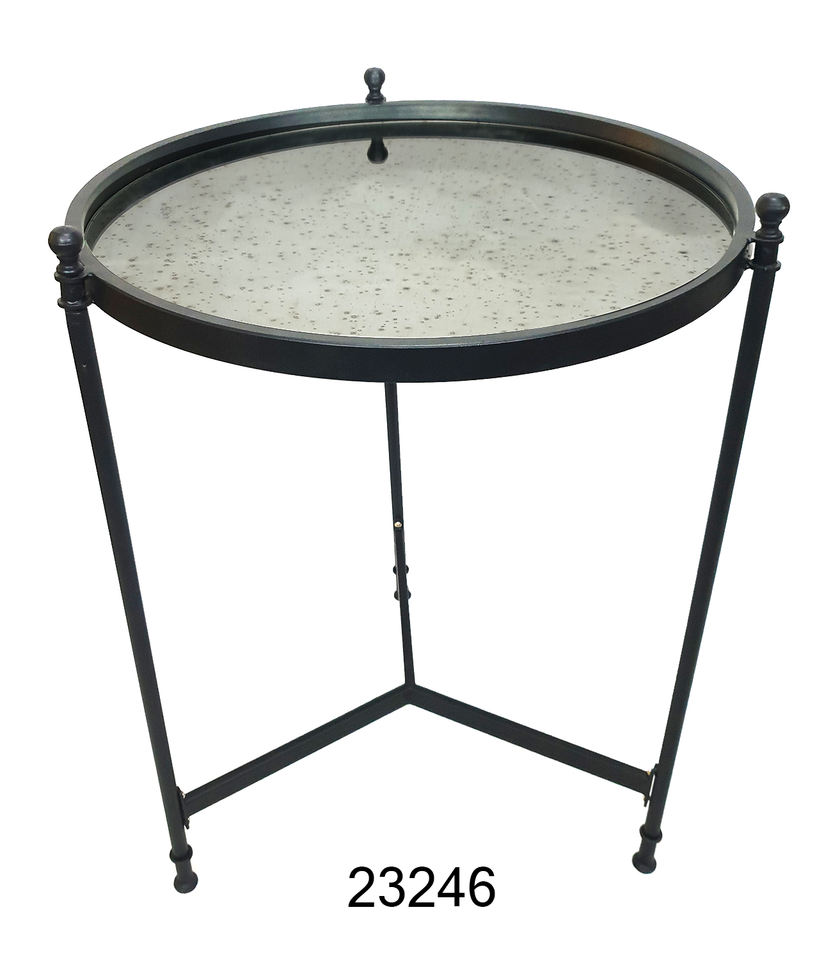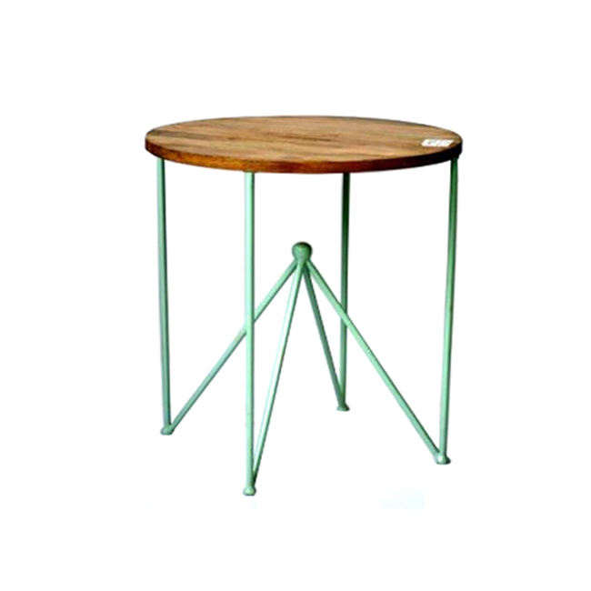 Nueva colección de mesa, tapa de madera de forma redonda con pirámide de alambre, marco de Color negro de hierro, mesa elegante, diseño de alta venta, decoración del hogar